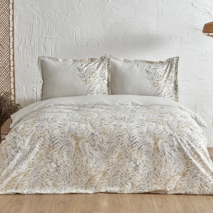 ست لحاف دو نفره 100% نخی کاراجا هوم بلد خاکستری کد 9242