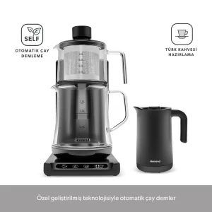 این محصول با اتصال وایفای و اپلیکیشن Homend Smart به شما اجازه میدهد تا از راه دور فرآیند دمآوری چای یا آمادهسازی قهوه ترک را کنترل کنید.